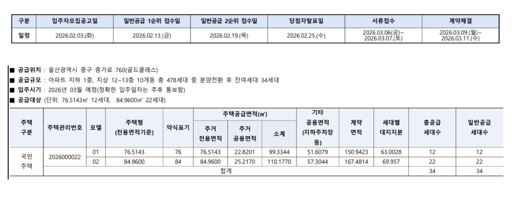 - 전용 76㎡ : 12세대
