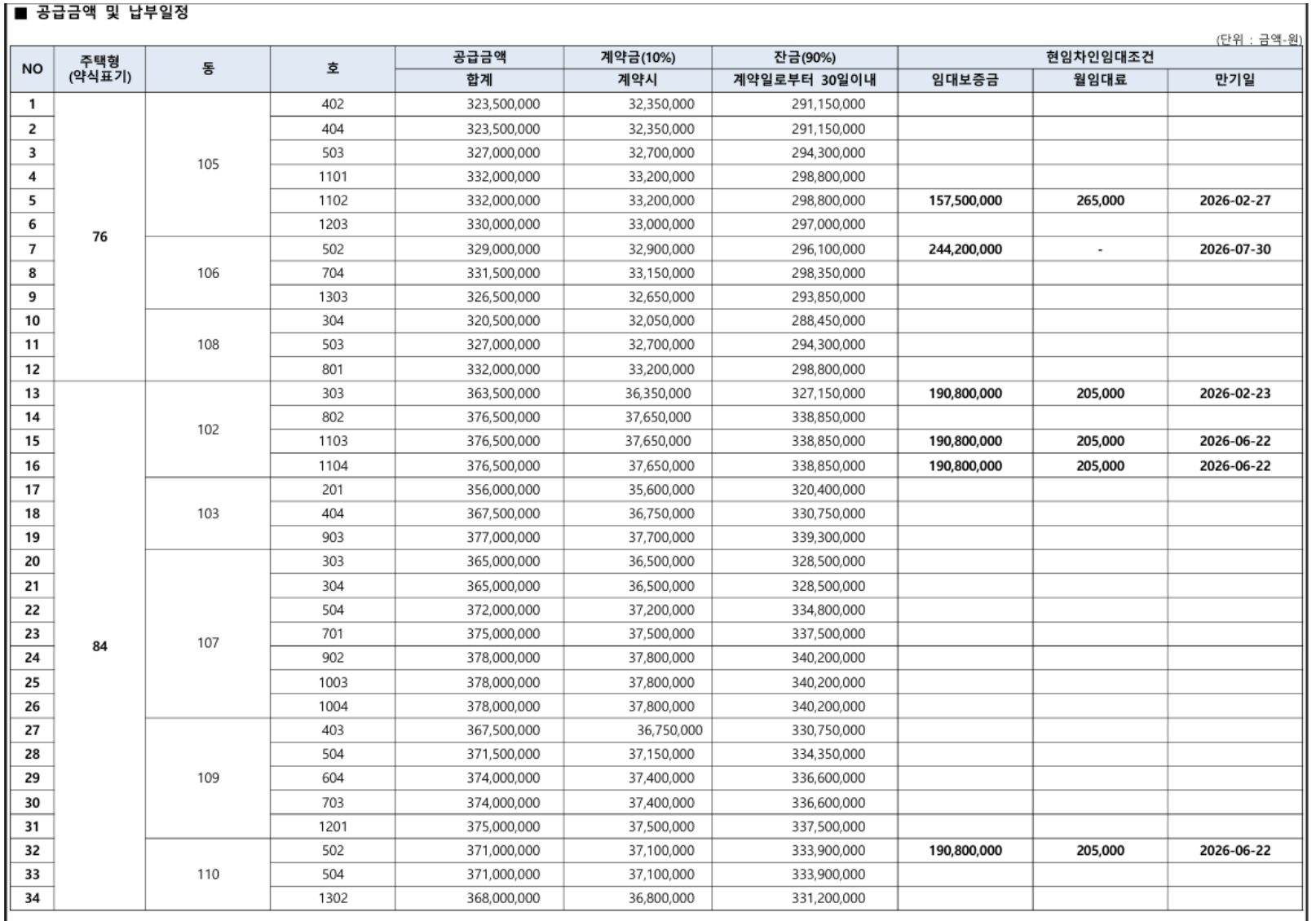 👉 분양전환 이후 남은 잔여세대 34세대입니다.