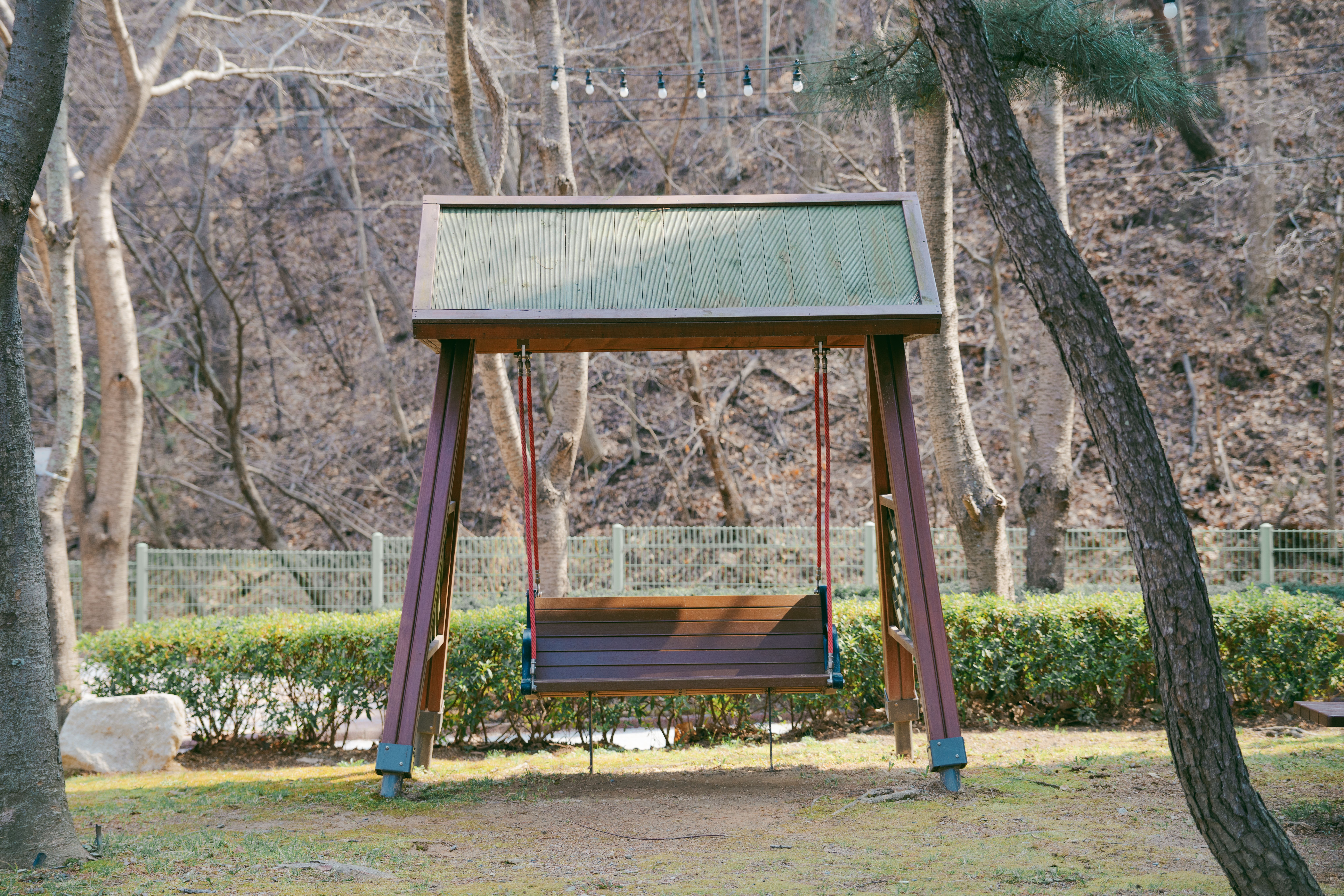 도서관이 자연과 인접해 있다는 지리적 특성을 살려, 야외 잔디광장에는 인조잔디 위에 텐트와 캠핑 의자, 간단한 서가까지 배치되어 있습니다.
