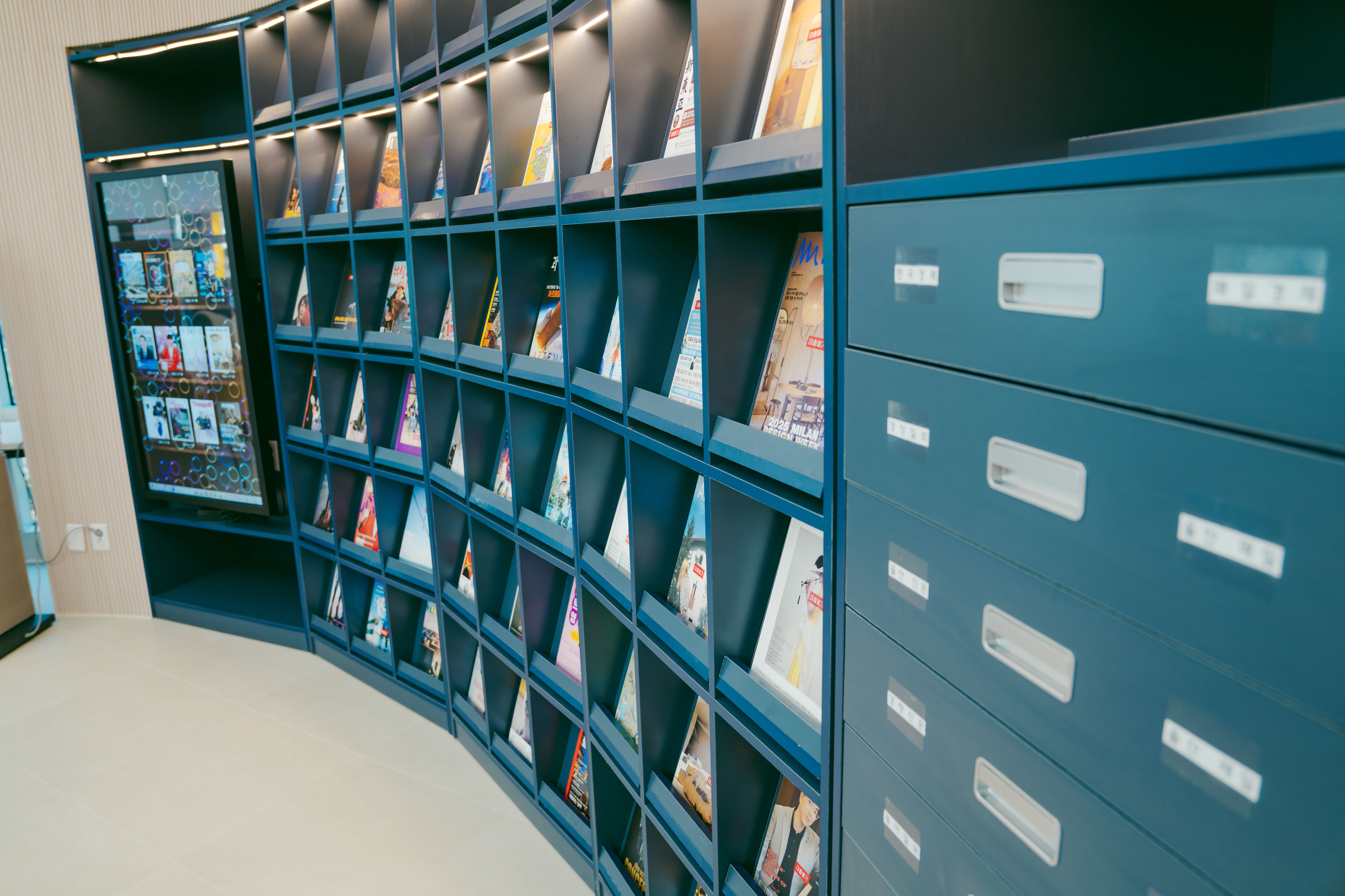 이곳에서는 노트북이나 태블릿을 이용할 수 있고, 신문과 잡지도 자유롭게 열람할 수 있습니다.