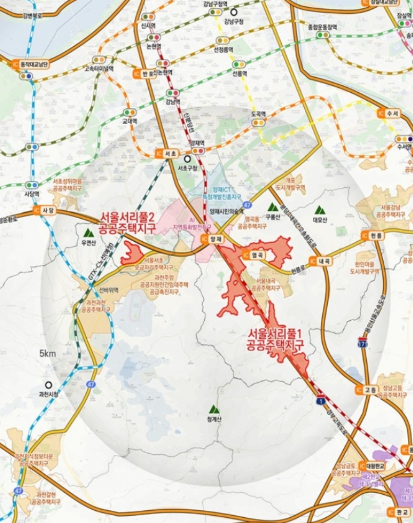 서초구 원지동·신원동·염곡동·내곡동 일원을 포함한 서리풀1지구 공공주택지구(약 201만㎡)를 공식 지정·고시했습니다.