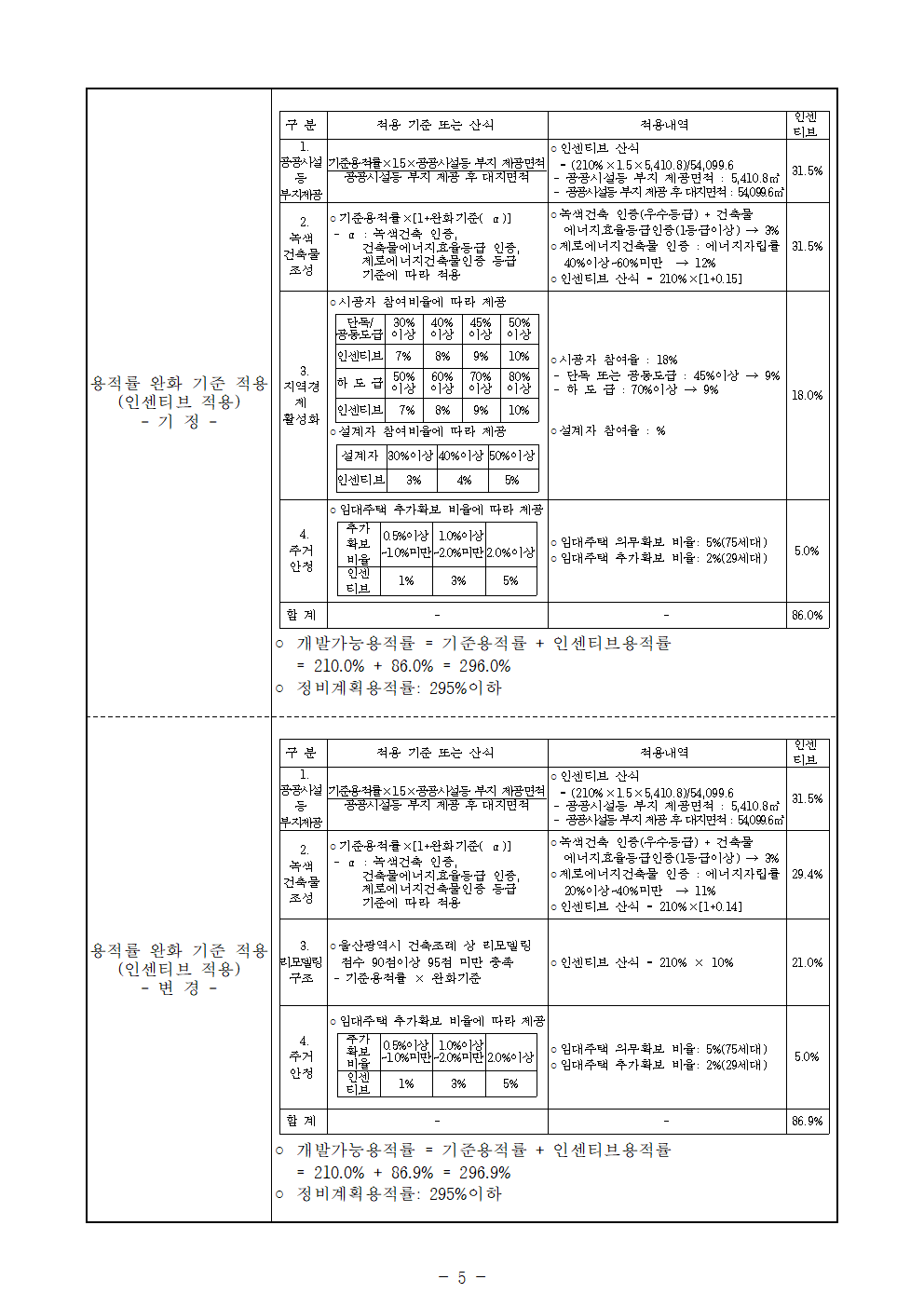최종 정비계획상 상한은 295%로 관리됩니다.