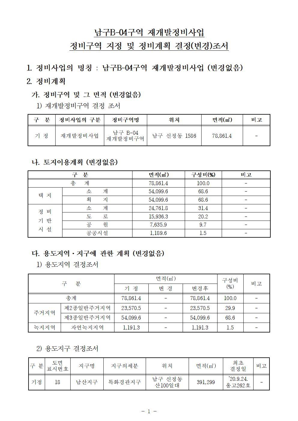 구역 지정 자체는 유지되었고, 정비계획 내용이 확정·정리된 고시입니다.