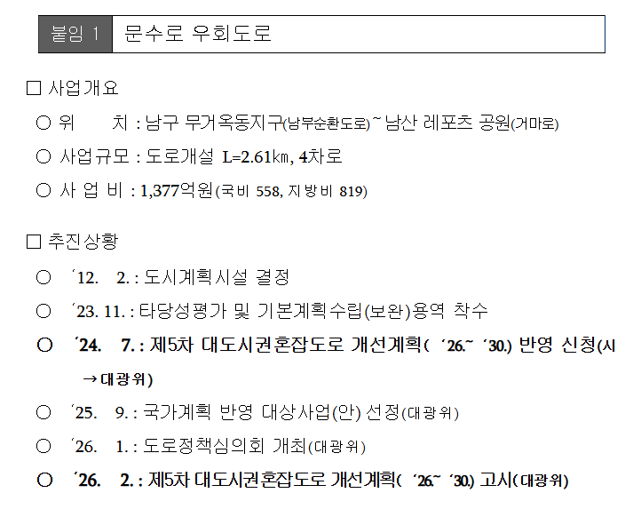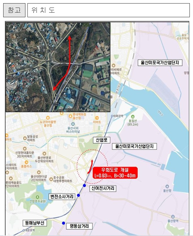 - 문수로 본선 바로 위쪽으로 대체 축을 만드는 구조