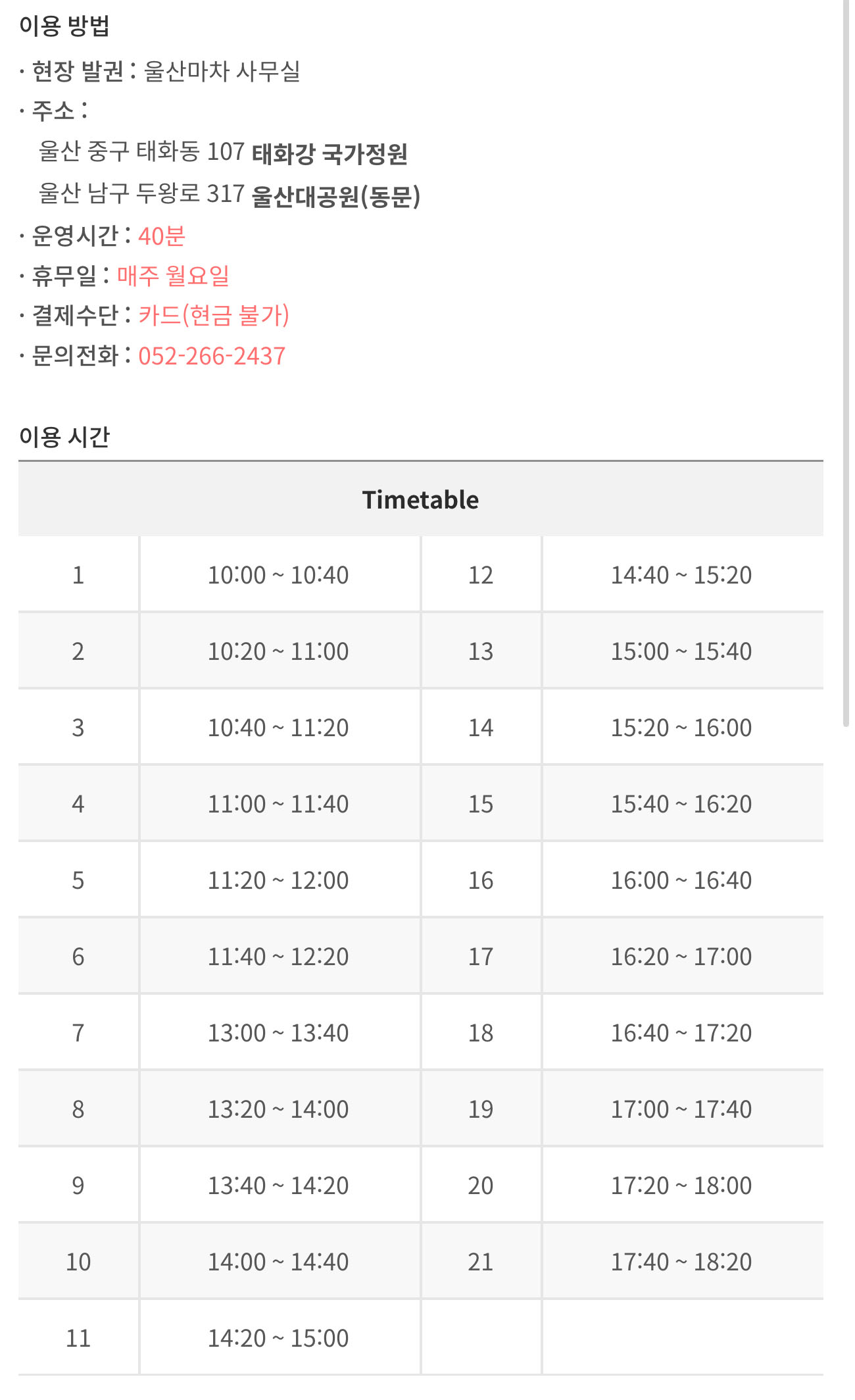 울산 관광 앱 ‘왔어울산’을 통해 운행 시간도 살펴볼수가 있습니다.