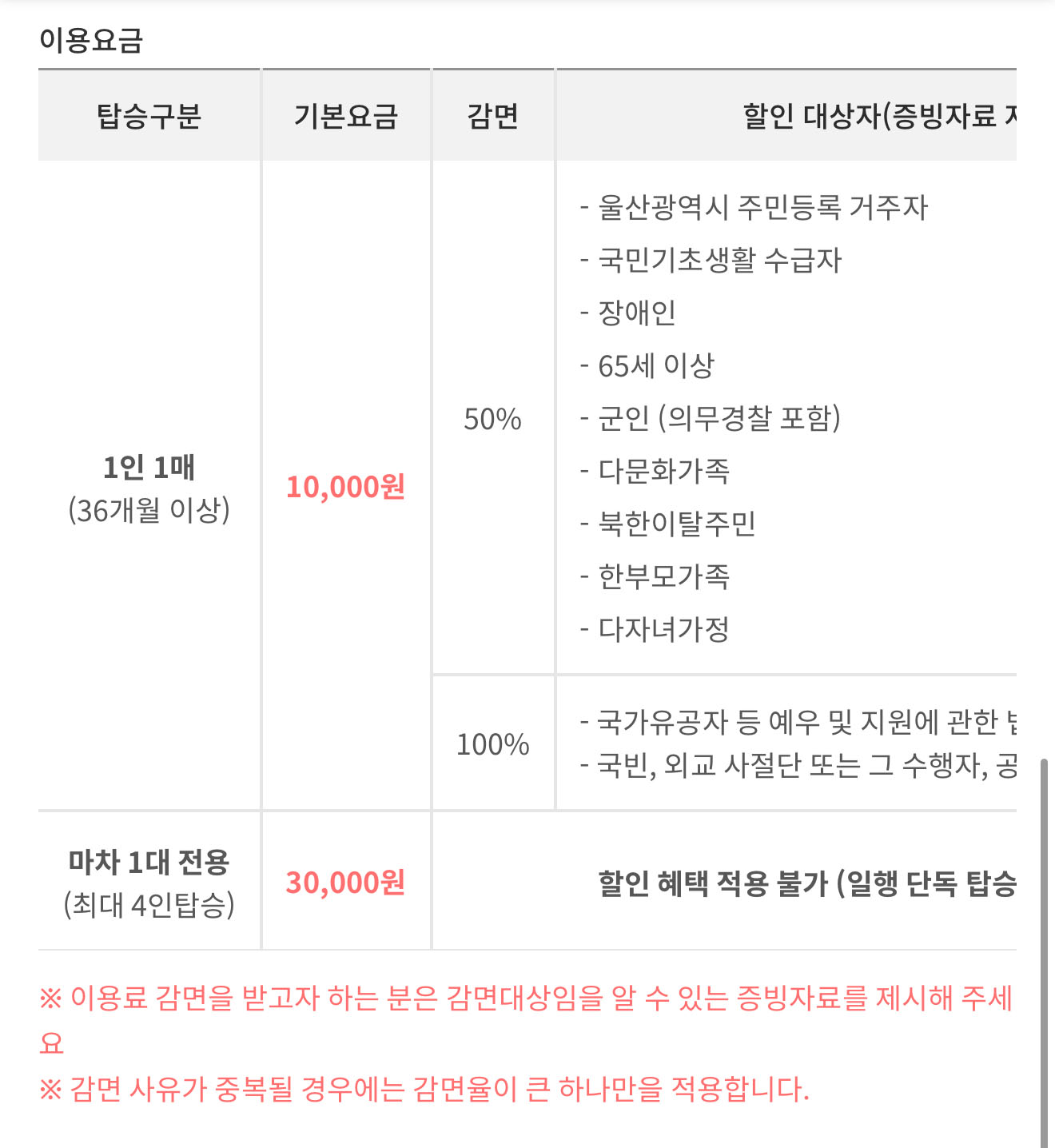 할인 대상자는 증빙서류를 지참해야 합니다.