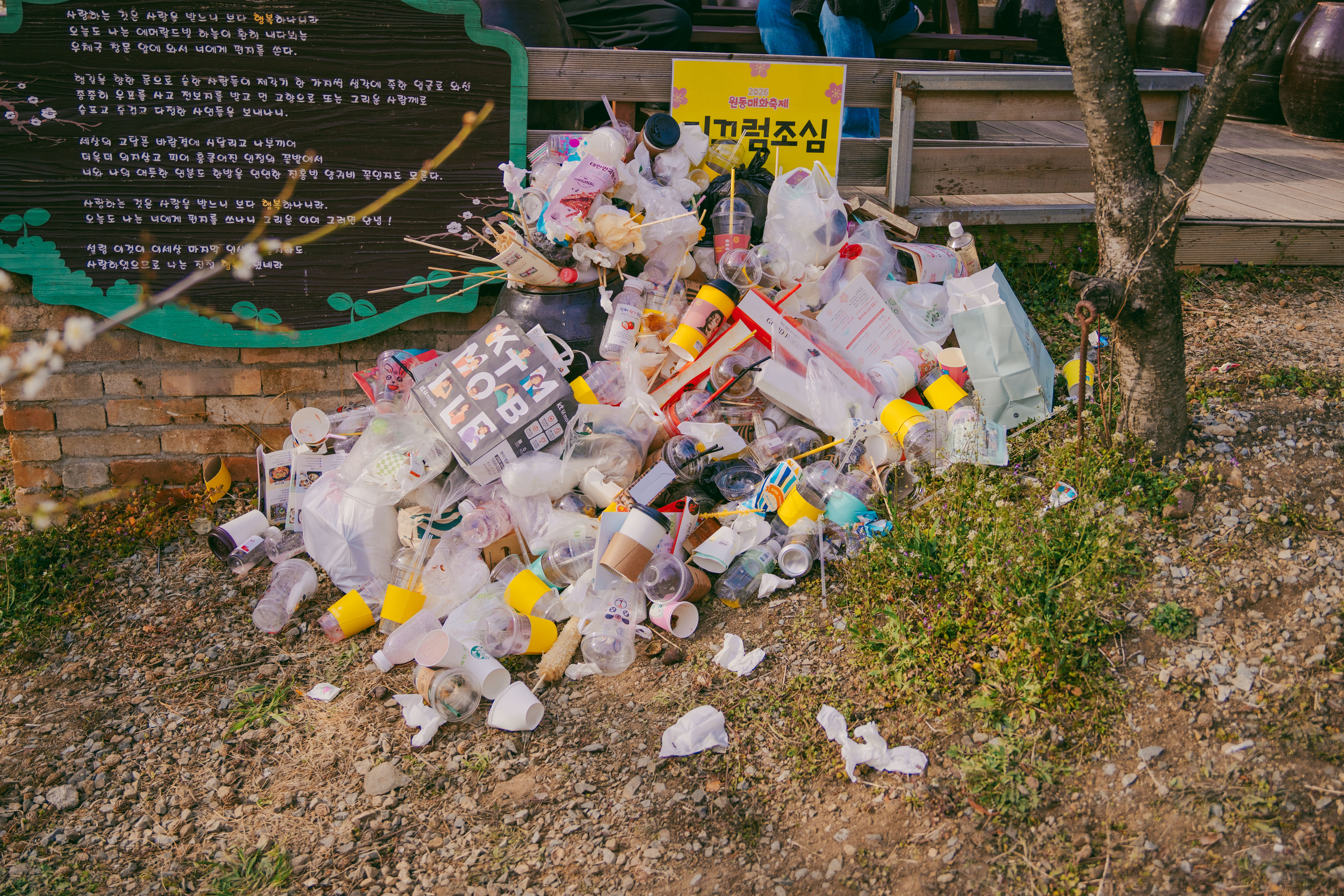 매화원 곳곳에 버려진 쓰레기를 보면... 제가 농장주인이라면 바로 출입금지 푯말 써부쳤을듯...